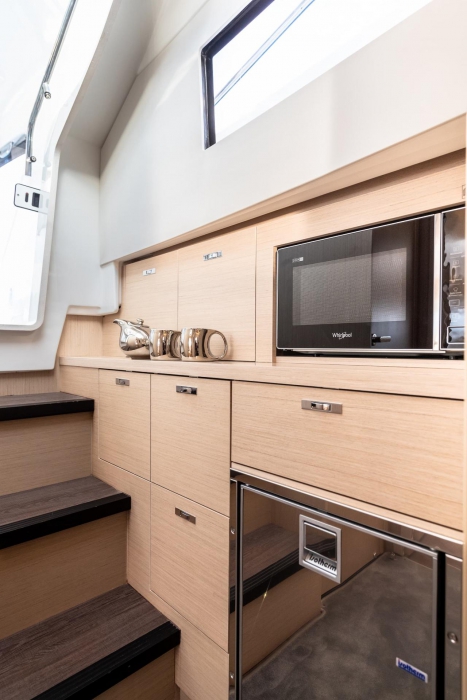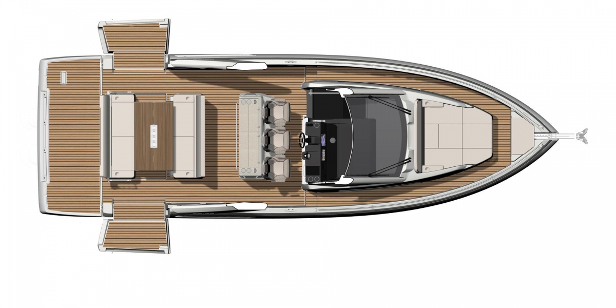 Resolutely turned toward the exterior, the DB/37 has the air of a party boat. Two modular bench seats comfortably accommodate eight people near a well-equipped central island galley, with: a stovetop, grill, sink, and refrigerator. For festive evenings and shared pleasures, this premium day boat also benefits from an interior layout adapted for cruising and more private moments. A soft, warm atmosphere graces the interior living spaces. A superb forward owner’s cabin, along with a vast aft guest cabin, a head compartment, and a breakfast point all promise comfort on board, fabulous nights on the water, and enchanted awakenings.