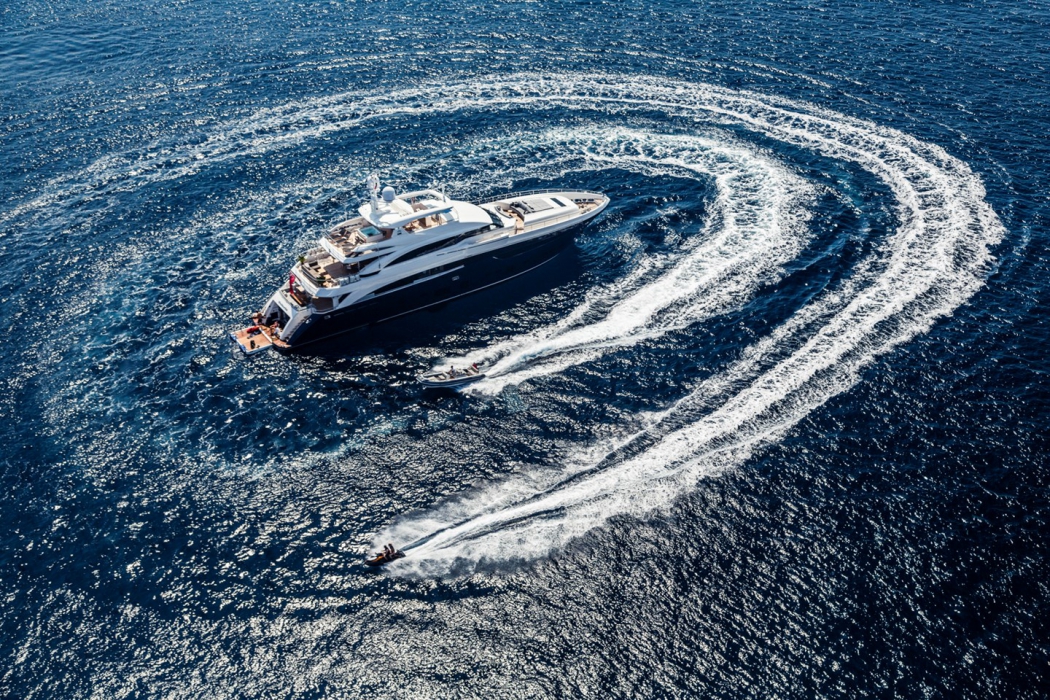 The commanding facade of the tri-deck 40M is quite breath taking. Her elegant powerful lines flow around sublime architecture. Secluded sunbathing retreats, a spa bath, beautifully proportioned dining areas, and a walk-in beach club are just some of her luxurious features. Everything to ensure that getting away from it all and spending time with friends is a true pleasure.