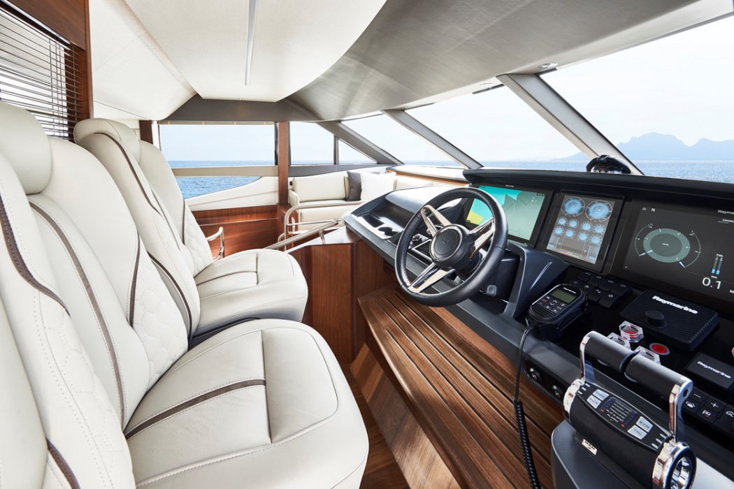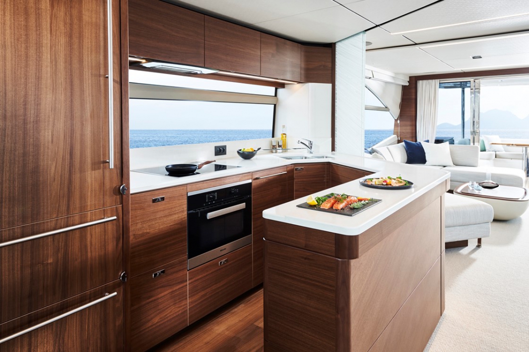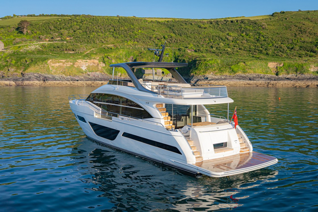 The new Y78 features the very latest in Princess exterior design and interior materials and finishes. Her flexible deck layout features a walkthrough foredeck with U-shaped seating and sunbathing area, whilst her flybridge aft has space for free standing furniture or can accommodate a crane and a tender. Natural light flows in to her main deck through extended window lines and a unique full-height window on the port side to make the free standing dining area a spectacular place to entertain. Forward on the lower deck, all three guest cabins are en suite whilst a dedicated staircase leads to the owner’s stateroom amidships via a private lobby area.
