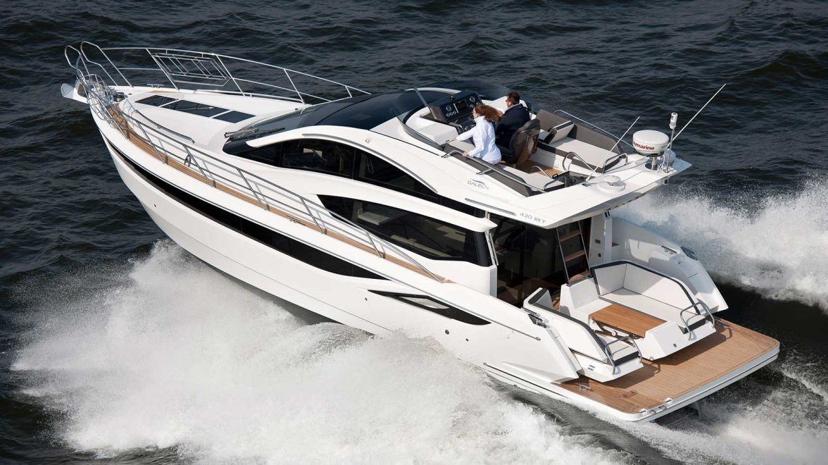 SKYDECK modelis žymi naujos kartos "Galeon" jachtas su gaivinančia viršutinio denio konstrukcija, kuri sujungia "flybridge" ir "hardtop" versijų privalumus. Išlieka ir gigantiškas liukas oro srovėms ir "nematomas" viršutinis denis didelės apžvalgos kelionėms.