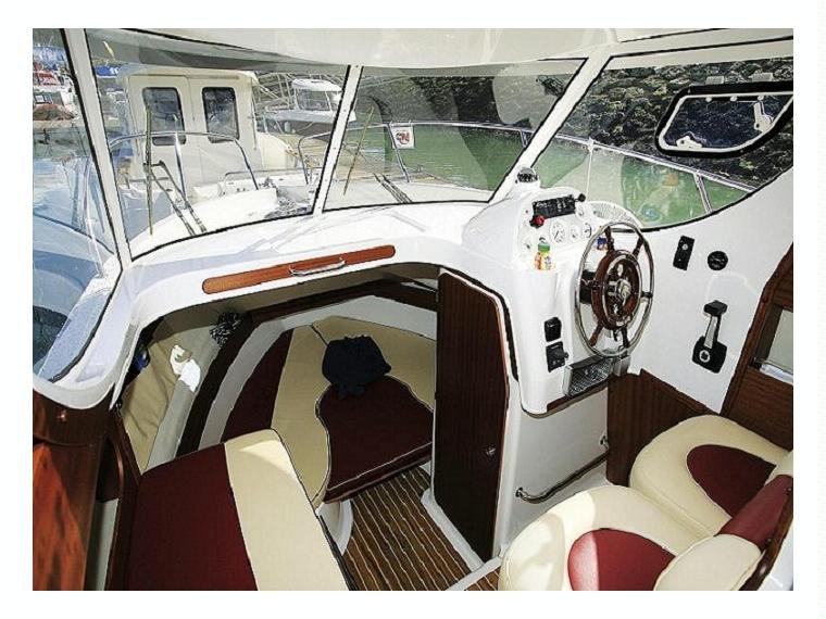Overall Length 8.3 m Length of hull 7.49 m Overall beam 2.93 m Bridge clearance 2.42 m Total boat weight with engine 2775 kg Maximum load (People, Gear, Engine) 820 kg Maximum power 220 hp (162 kw) Draft 0.88 m Water tank 80 l Fuel tank maximum capacity 300 l Fuel tank type Integrated Boat's height 3.4 m Maximum number of people 8 Number of Berths 2 CE category B