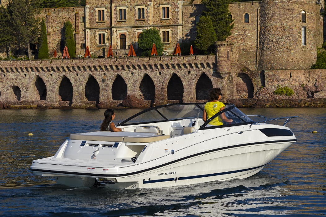 The distinct styling and space maximization of Bayliner’s VR Series has expanded into a striking new overnighter in the new VR5 Cuddy. The cabin has a berth to sleep two, and its access door has molded in steps making foredeck access easy through the split, sport windshield. In the cockpit, the boat increases the aft seating area by carrying it back to the aft most point of the running surface—then adding the swim platform. Its the kind of thinking that creates usable space of a boat up to two feet longer. Just step aboard…you’ll feel it.