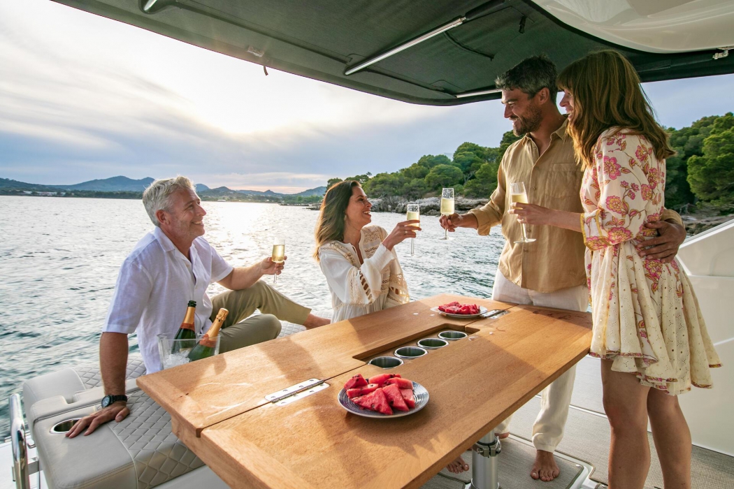 Resolutely turned toward the exterior, the DB/37 has the air of a party boat. Two modular bench seats comfortably accommodate eight people near a well-equipped central island galley, with: a stovetop, grill, sink, and refrigerator. For festive evenings and shared pleasures, this premium day boat also benefits from an interior layout adapted for cruising and more private moments. A soft, warm atmosphere graces the interior living spaces. A superb forward owner’s cabin, along with a vast aft guest cabin, a head compartment, and a breakfast point all promise comfort on board, fabulous nights on the water, and enchanted awakenings.