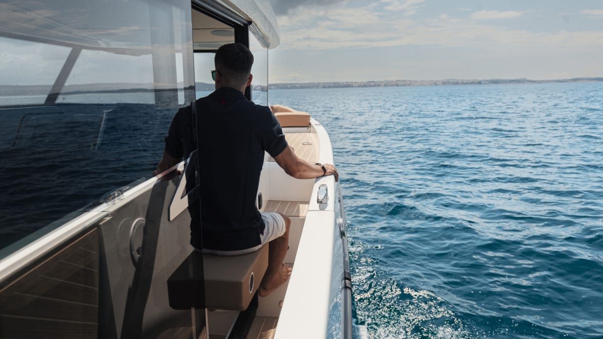 The Saxdor 340 GTWA sets a new standard in design and functionality for all-weather boating. This walkaround model seamlessly blends open-air enjoyment with protected comfort, offering a secure, weatherproof space that keeps you sheltered in all conditions. Equipped with lightweight, robust vacuum-infused construction and a two-stepped deep V-hull, it combines exceptional seafaring qualities with efficient fuel consumption, ensuring a smooth, high-performance driving experience.