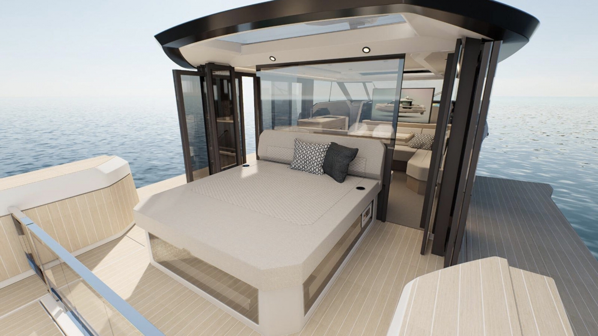 The Saxdor 460 GTC carries our distinctive profile into our largest and most advanced model to date. The flagship is built as a full-beam wheelhouse outboard yacht that can be entirely closed or entirely open. With the doors shut, it stays calm, bright, and breathable, with wide views from helm to dinette. Open it up and the lines disappear.